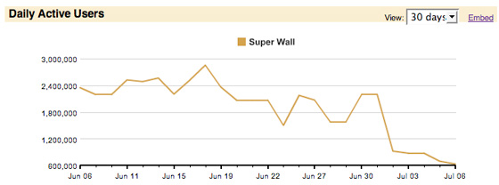 The consequences have been just as dramatic. A month ago Super Wall had 2.4 million average daily users. Today it’s 600,000 and falling fast.