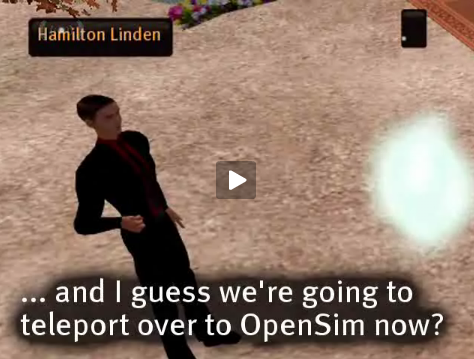 Here’s a video showing the avatars “teleporting” from one world (i.e. set of computer servers) to another: