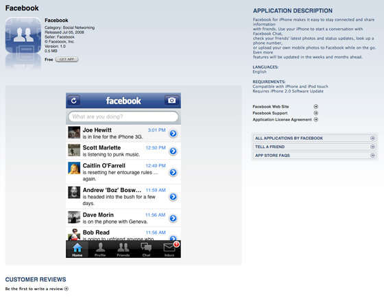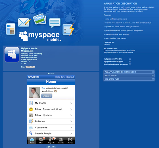 Here are screen shots of the Facebook and MySpace App on iTunes, as well as one of the directory pages: