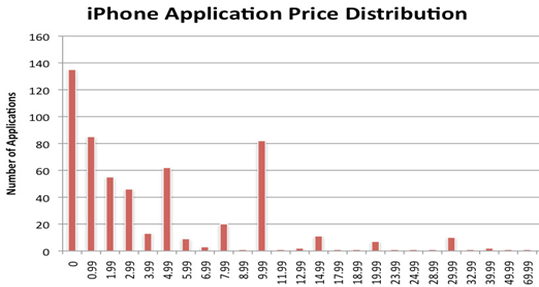 According to Pinch Media, the App Store had 552 applications at launch. 135 of these apps are free, while the remaining 417 range in price from $0.99 to $69.99, with the vast majority ranging between $0.99 and $9.99.