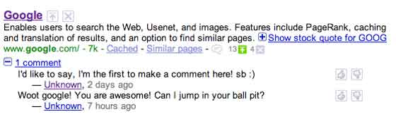 Today Adrian Pike, the CTO of startup Tatango, noticed that the interface changed yet again and now includes user comments. Like Digg, each comment has an up or down vote feature as well, and Google is using thumbs up and down icons that are exactly the same as those on Digg. The comments show the username of the person leaving it, and clicking on it shows their Google account profile.