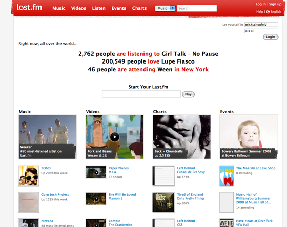 Last.fm has a new look today that simplifies the navigation of the main site and makes finding music easier. Or at least, it would make finding music easier if the site wasn’t so buggy. (At least for me. I couldn’t even log in without getting an error. This may be due to fans rushing to check out the new features, or simply poor planning).