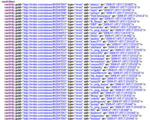 For now Gnip is only sending updates for requested users, not the richer data that some applications like Twhirl need to build a Twitter-like desktop environment. Twitter may give Gnip permission to send additional data, like @replies and direct messages, over time (if that last sentence doesn’t mean anything to you, it means you aren’t a crazy-heavy Twitter user, just disregard it).