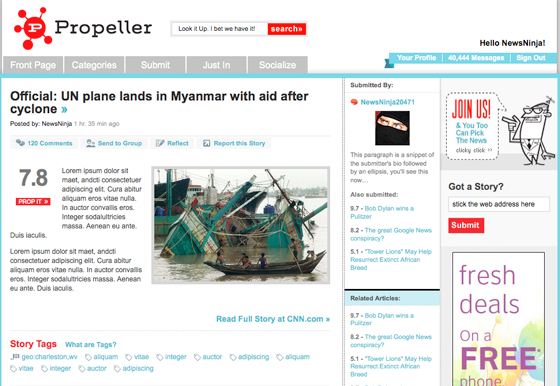 Propeller has had a rocky history. It first launched in June 2006 under the Netscape.com domain as “a better Digg” in that paid editors chose the top stories from user-submitted and voted links. Soon the site was paying top Digg users to move to them.