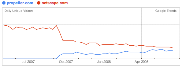 Netscape traffic promptly spiked downward, but Propeller, led by general manager Tom Drapeau, filled the gap and has had steady growth since then.