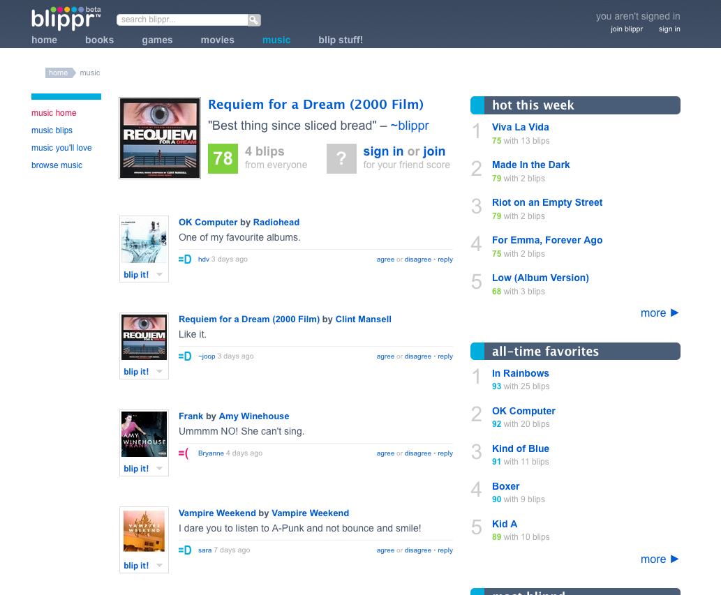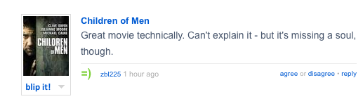 Like Twitter, you can follow what your friends are Blipping, and update your “media status” of what you are reading, watching, playing, or listening to. Now everyone really can be a critic.