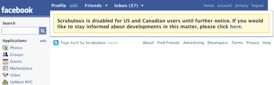Long outplayed by two Indian brothers, Hasbro finally delivers a massive counter blow to Scrabulous, one of the most loved games on Facebook. Scrabulous fans in North America will see the following message when they try to play the game: