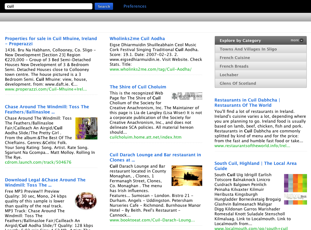 —It’s embarrassing IMO. The results are thin and the images completely wrong. Not good is one thing … Cuil seems a cut below not good right now. – AJ Kohn