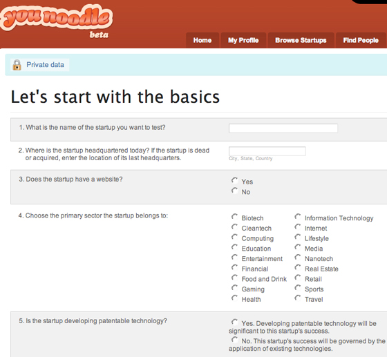 YouNoodle collects a lot of data on startups to make the prediction – the questionnaire takes a good half hour to properly complete. YouNoodle aims to make the prediction right before the first round of funding for a company. So one way to test it is to enter information about a more mature startup that was true prior to funding, and see how well it predicts the actual results.