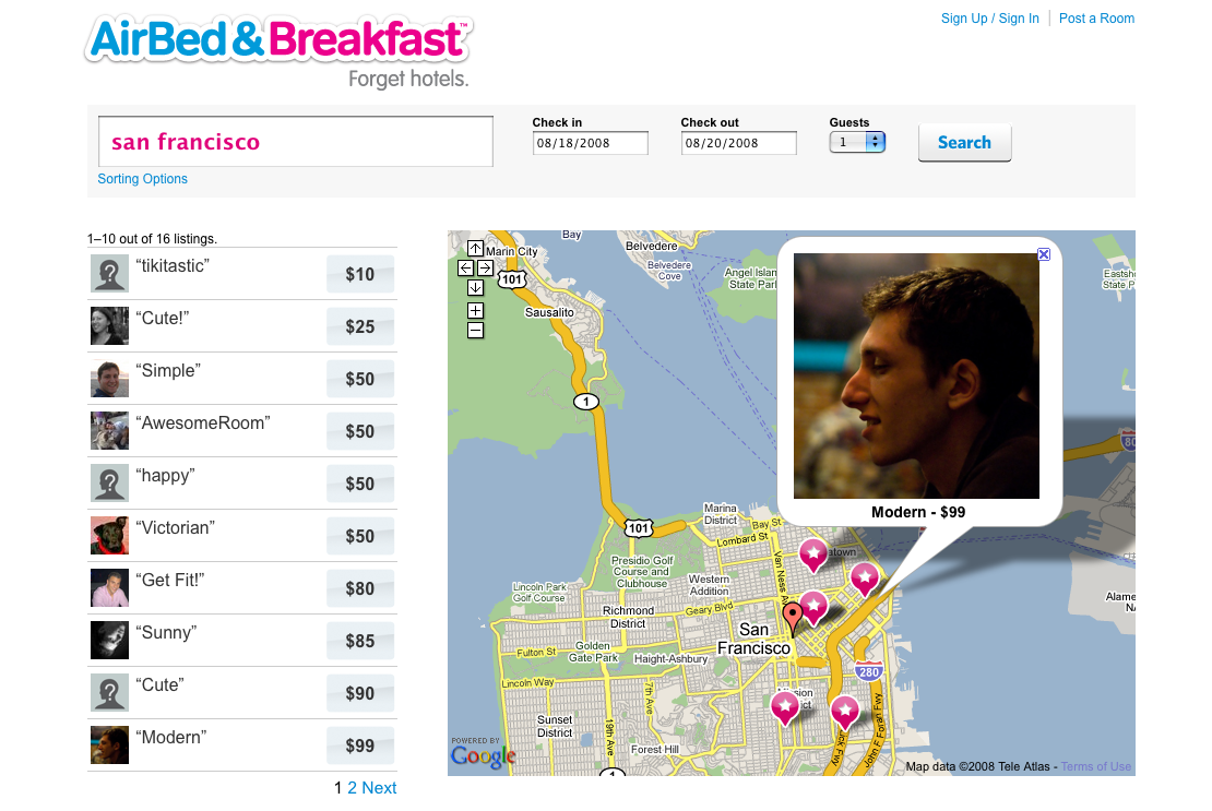 Can’t find a hotel for TechCrunch50 or the next conference you are going to? If you don’t mind roughing it, try AirBed and Breakfast. Anyone with an airbed (or couch) can “post a room” and how much it costs. Thrifty travelers can make reservations on the site and pay for the stay.
