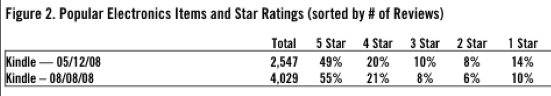 The Kindle also has the most reviews of any electronics product (4,000 versus 2,400 for the second-most reviewed product in that category, a Garmin GPS Naviagator). And Mahaney also points out that, on average, those reviews are now more positive (55 percent are five stars, up from 49 percent in May)