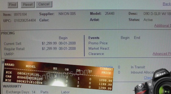 The much-anticipated Nikon D90 is about to leave the nest! Circuit City had it in their inventory list a couple days ago, and now Best Buy is popping a D90 as well.