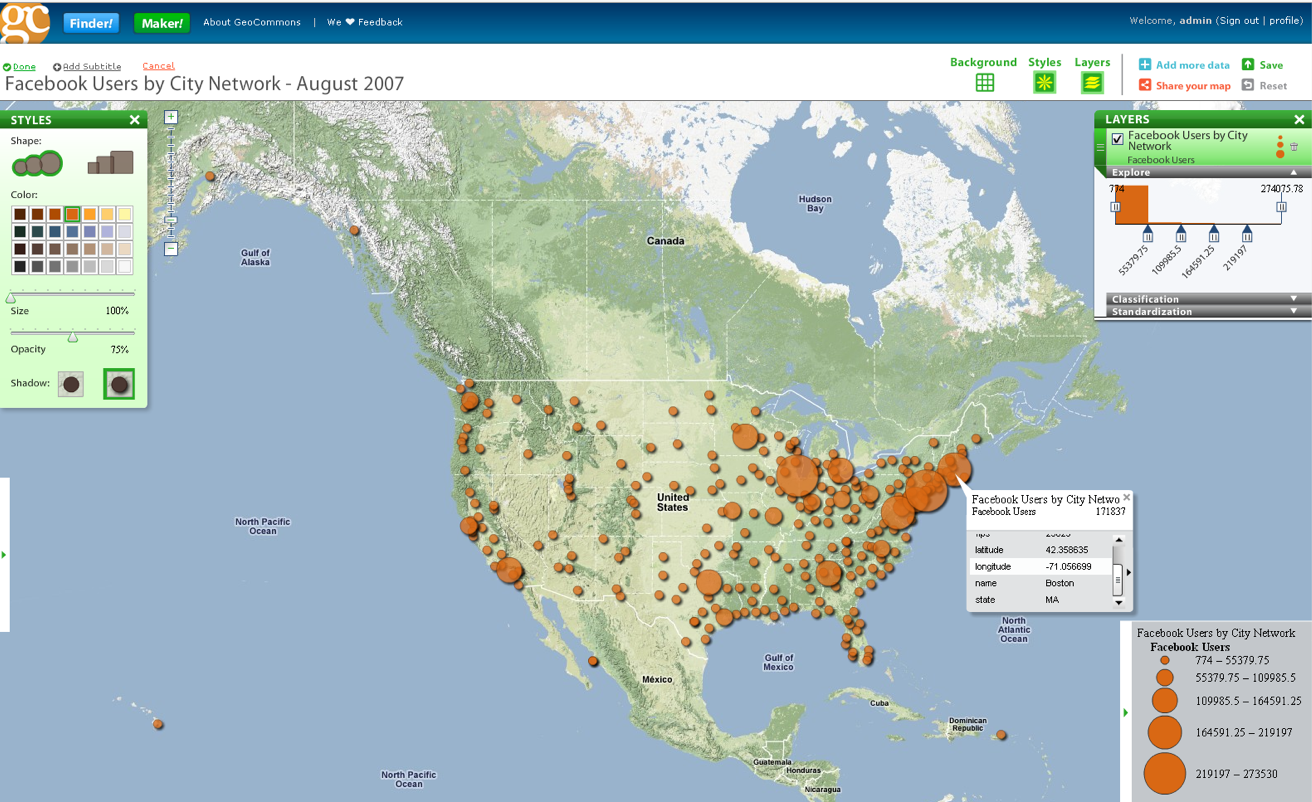 Online map mashups are about to get a whole lot more sophisticated. A startup in Arlington, Virginia called FortiusOne (based on technology out of George Mason University) is developing a service called Maker! that will let anyone easily find geo-tagged data available on the Web and map it. One piece of the service is already available: a search engine for geo-data called Finder! It lets you find sets of geographical data already on the Web, store it, and organize it, or upload your own. Both are being built around its GeoCommons brand.