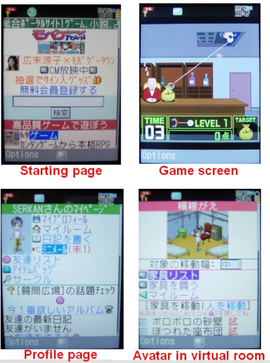 Each of the 11 million Mobage-town members is represented by an avatar “living” in a virtual room. Both the characters and rooms can be pimped out with new clothes and wallpaper, for example. In order to do that, users must acquire “Moba Gold”, a virtual currency established by DeNA, by clicking on ads, signing up for affiliate services and inviting new members.