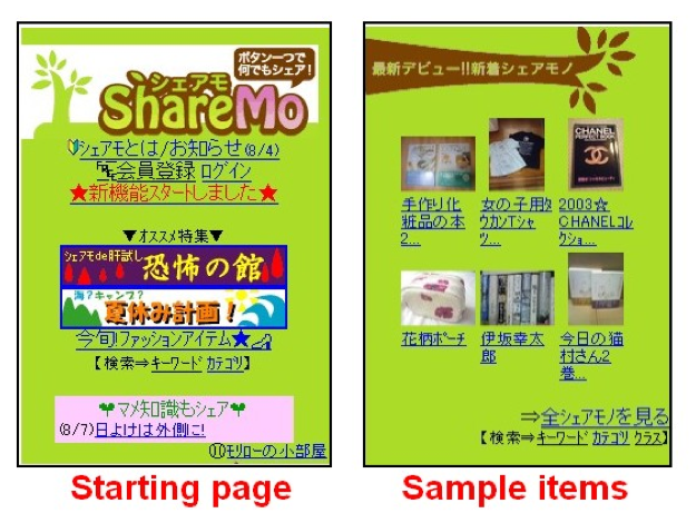 Swapping sites are nothing new (see Dig N’ Swap), but in Japan we like to trade our junk via our mobile phones. That is what the Japanese social sharing service Sharemo is all about. The site’s ambitious idea is to contribute to overcoming Japan’s throwaway society.