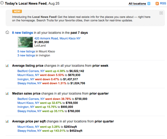 Another useful feature Trulia added today to its regular homepage is feeds. This is generated automatically based on your recent activity, and keeps you up to date on new listings and average price changes. It acts like a prospective search every time you come back to Trulia. Now, why isn’t this built into the iPhone app?