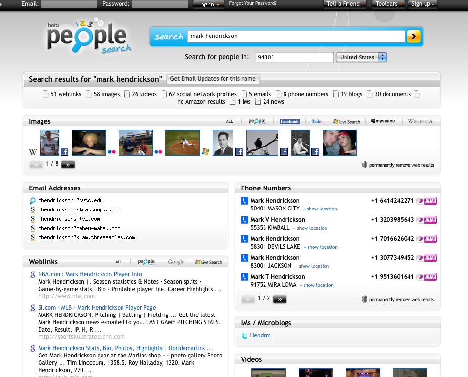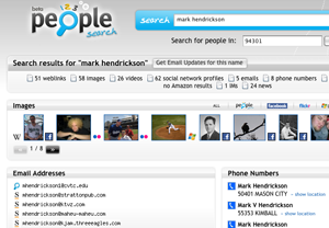 123People has used BOSS to show web results and images about people alongside the email addresses, instant messaging accounts, documents, phone numbers, and other information it collects from elsewhere. Unfortunately (or fortunately?), I couldn’t find more than a few photos of myself when searching with my name, even when I told it which area code to look within.