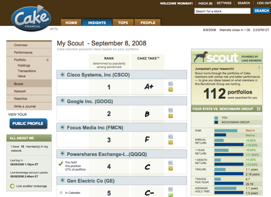 By adding these social recommendation features, Cake is becoming more like the Last.fm of investing. But it adds a ranking element so you know which members are worth following. Other social investing startups creating similar ranking systems include Covestor and Vestopia, and the race is on to create real financial products based on the social investing data that these startups are collecting.