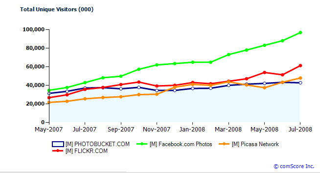 By adding new ways to discover public photos, Picasa is taking on Flickr, Photobucket, and Facebook Photos in a more direct way. Globally, Picasa passed Photobucket in July with 48 million visitors compared to Photobucket’s 43 million, according to comScore. It still trails Facebook Photos (97 million unique visitors) and Flickr (63 million). In the U.S., it is much further behind, with only 8.3 million monthly visitors, compared to 18.3 million for Flickr, 23.5 million for Photobucket, and 25.4 million fopr Facebook Photos.
