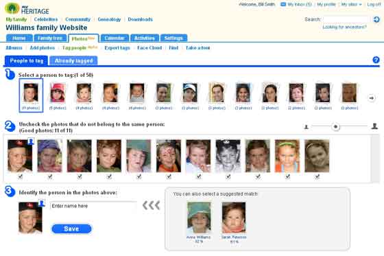 MyHeritage’s facial recognition, which works a little like recent Picasa enhancements, lets you train the service by tagging a few photos of an individual. MyHeritage then starts to auto-tag other photos that you upload of that person, too. Users don’t have to upload photos directly, either. They can sync from Picasa, Flickr, Facebook, etc. And once the photos are properly tagged with people’s names, MyHeritage will re-sync them back to the original services.