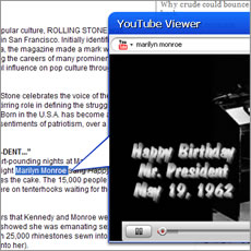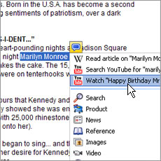 After installing KallOut, you can click on a small KallOut box over every supported term (there are 100 million of them) contained in documents, email, or websites. (The boxes are small, and not too distracting). By clicking that box, a pop-up is displayed and shows the best search terms for YouTube, Wikipedia, Google, IMDb, and more. If you want to view one of those links, KallOut displays a small window bringing you to the site, while still letting you work in the document or online. It’s not too useful when you’re in your browser, but KallOut’s pop-up box could be extremely useful when you’re working in a Word document and you don’t want to keep switching between windows to input a search term into Google.