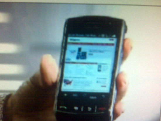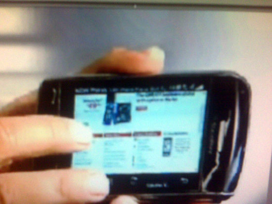 Some tipster managed to sneak their camera phone out to snag some shots during today’s internal Verizon employee briefing on the BlackBerry Storm. One’s a basic product shot, while the other two show the handset’s browser in landscape and portrait orientations. Sure, the shots sort of look like they were taken from the inside of a space helmet during a snow storm, but this person likely risked their job for these – high fives to them!
