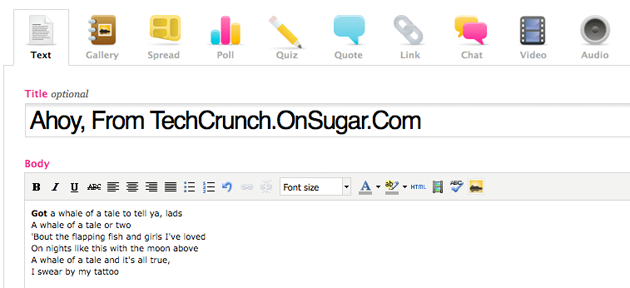 You can check out a sample blog at TechCrunch.OnSugar.com.