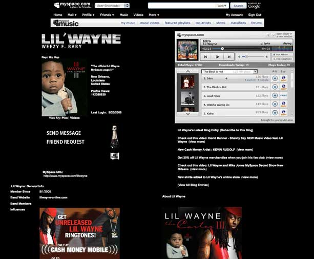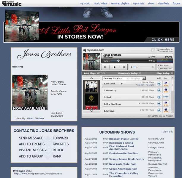 MySpace Music allows users to stream virtually any song ever published for free. Users can also create playlists that contain up to 100 songs and share them with others. Any song can also be downloaded in non-DRM MP3 format, for a fee, from Amazon’s music download service. And if you want that song as a ringtone, you can get it as well via Jamster.