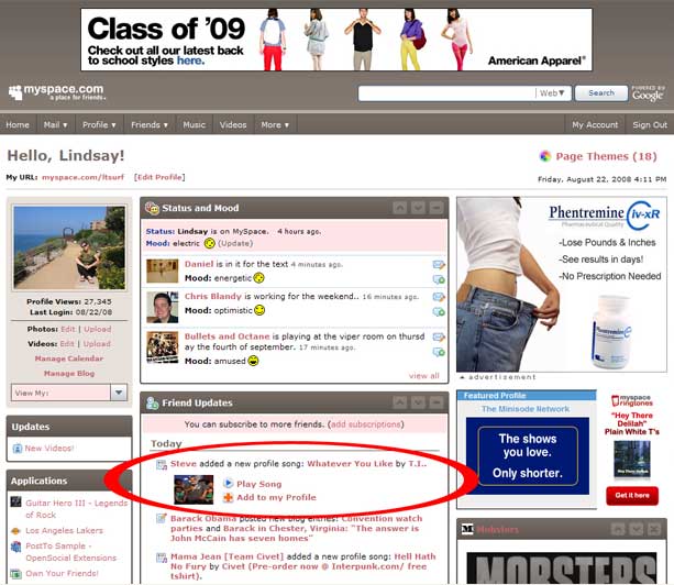 MySpace Music goes a long way towards music’s inevitable future where all recorded music will be free. They, along with services like iMeem, are now giving on demand streaming music at a zero price point to users, which was inconceivable even a couple of years ago.