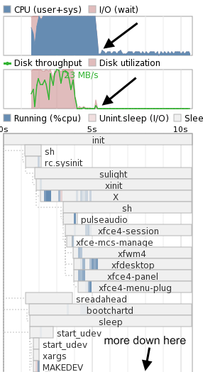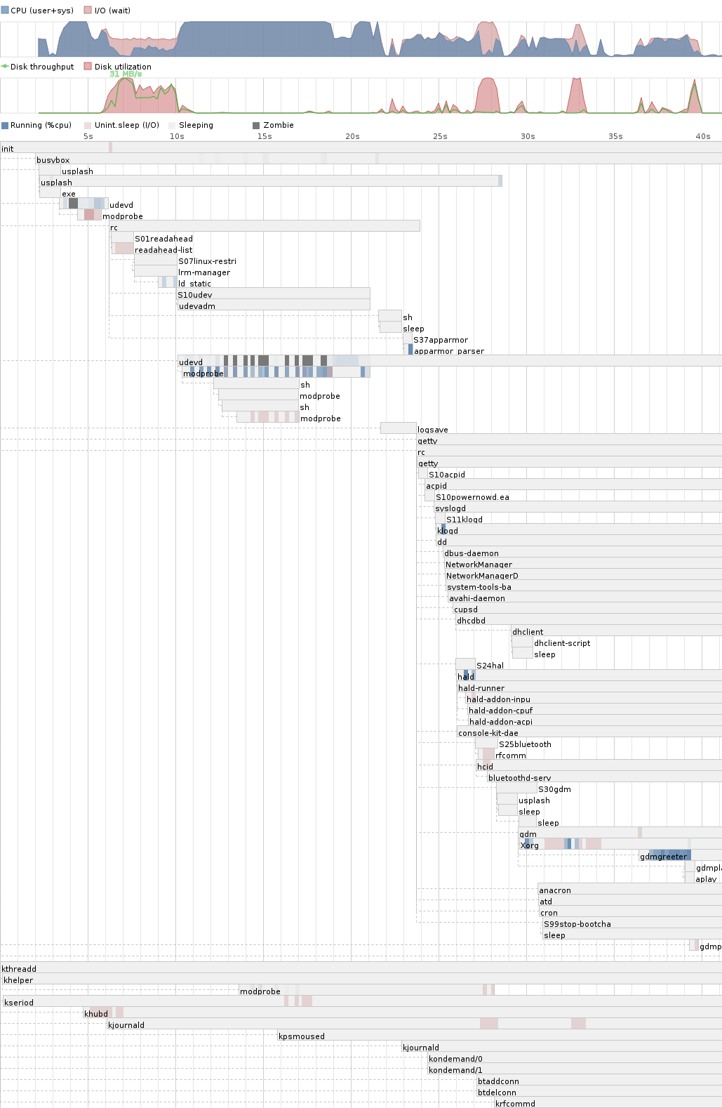 I’m not the most informed guy on Linux boot processes, but it sounds like they really didn’t cut anything truly critical (that’s manifest of course because the system boots), and you’d be surprised how much time can be saved by customizing the boot process based on what the machine does and doesn’t use. Not running licensed drivers? Don’t need the license verification tool — 2.5 seconds saved. Only using web mail? Don’t need sendmail — 2 seconds saved. Then with more optimization (including a lot of hacking of the X Windows System) and a lot of elbow grease, they had it at a hair less than 5 seconds. The boot graphs are interesting and the article is informative even if you have interest in optimizing your Windows or OS X system, so check it out.