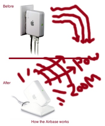 The problem with radio waves is that they just can’t seem to pass through things. That’s why I maintain a direct line of sight to my wireless router at all times — even when I’m not using it! And with this range extender for my Airport Express, now I can make my router higher up and more visible in the room — because that’s why I bought a wireless networking solution: to make my cabling and backend electronics more prominent!