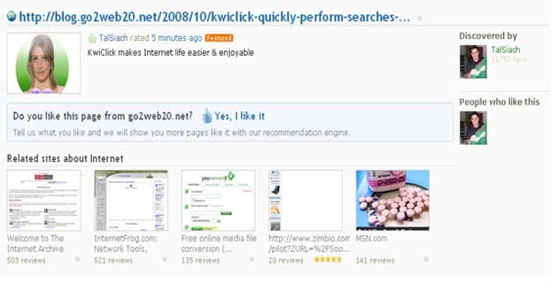 For example, I clicked the question above, and marked Go2web20.net as a source I would like to see more from the site. The picture below shows the changes on what happens where the “do you like this page from…” is.