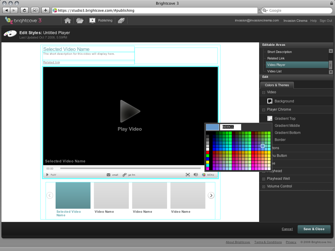 With Brightcove 3, the company is introducing a streamlined user interface and a whole new set of capabilities. These include a new markup language for creating video players called the Brightcove Experience Markup Language (BEML), new APIs for customers and developers, and intelligent streaming technology that dynamically changes the video quality based on the viewer’s device and bandwith limitations.