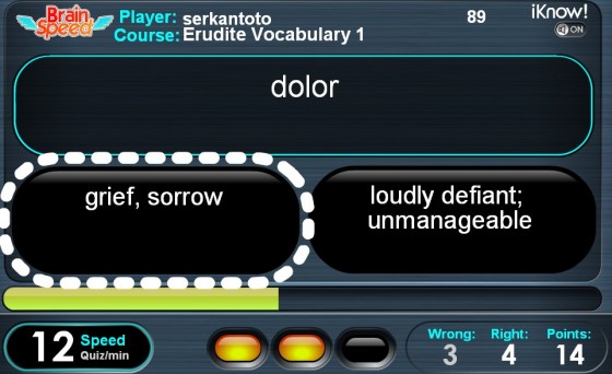 iKnow disaggregates information into bite-size pieces (called items), making it easier for users to store, absorb and manage it as personal knowledge on the site. For instance, the “Erudite Vocabulary 1” English course features a total of 89 items (i.e. verbs like “immure”, “bruit” or “adumbrate”) that are embedded in 134 different example sentences. The system recommends (and automatically schedules) 28 days for this course but users get to decide themselves whether they want to absorb the study units through multiple short bursts or long study sessions.