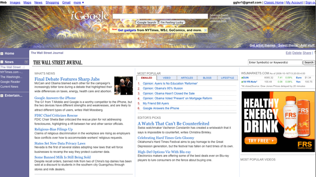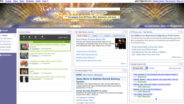 Partners that are launching with expanded gadgets include the New York Times, the Wall Street Journal, the Washington Post, TV Guide, iLike, CurrentTV, and Go Comics. Google itself has created extra-wide gadgets for Google Reader, Gmail, Google Finance, and YouTube. If you have an iGoogle page in the U.S., you should see the new design rolled out by the end of the day.