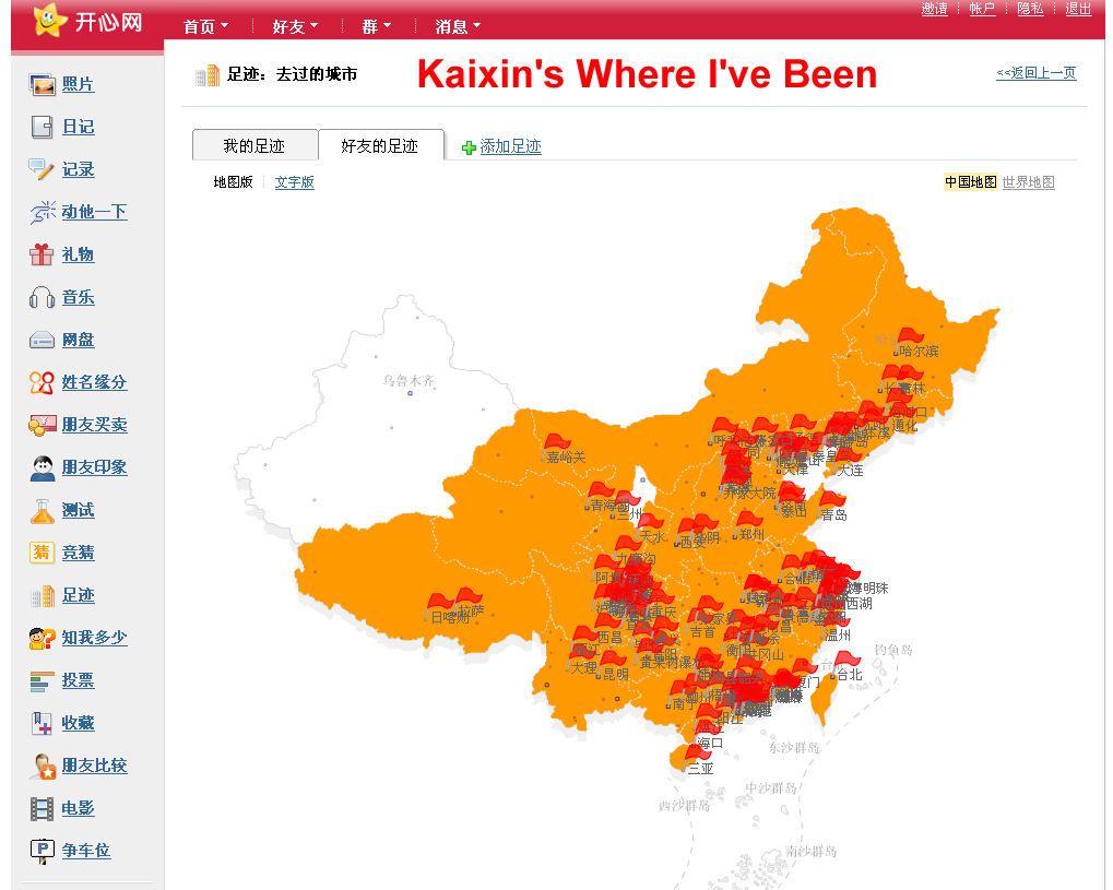 - Where I’ve Been: This application defaults to a province map of China because most people have never left the country.