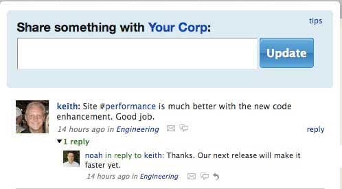 When Yammer, a micro-messaging service for the enterprise, launched at TechCrunch50, the biggest complaint was that the service was one big inbox, with no way to create groups or tag messages.