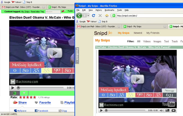 To monetize Snip, Schliker says that the site isn’t relying solely on advertising, explaining that the company is currently in talks to have Snipd act as an instant way to send a web clip to someone’s social network profile or blog. There are already a few ways to do this (for example, Facebook offers its own “Share This” bookmarket), but it’s nice to see that the startup is exploring other options beyond AdSense.