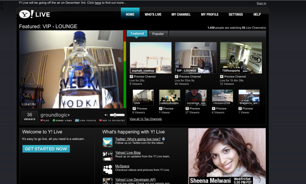Now Yahoo software engineer Keith Thornill has published a blog post announcing that Y!Live, which never really passed the idea stage, will effectively stop broadcasting December 3. Yahoo is hosting a townhall on Wednesday to wish the service farewell.