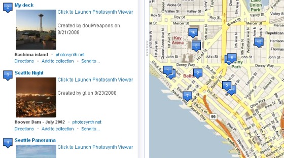 Although the utility of having Photosynths integrated with Live maps is questionable at the moment when compared with Street View, it’s only a matter of time before the map is a little more saturated with user-generated content. Imagine if a rooftop restaurant put out an official, well-done synth of the view from their deck — that’s really great exposure if it pops up when you type in “downtown seattle restaurant patio” or something like that when you’re looking for a scenic outdoor bite in the summer.