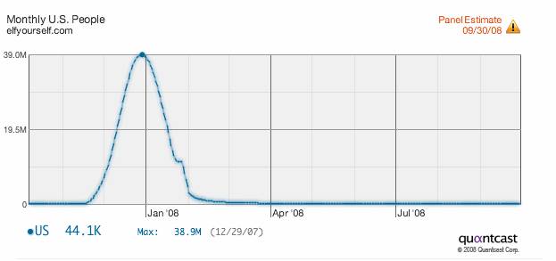 A year ago, one of the surprise holiday breakout hits on the Web was ElfYourself.com. It was a promotional viral video site created by OfficeMax that let people upload their pictures and create dancing elves that they could then send as e-cards to family and friends. ElfYourself turned out to be the fastest growing site last December, peaking at 39 million unique visitors in the U.S. (and attracting a total of 100 million unique visitors worldwide throughout the campaign).