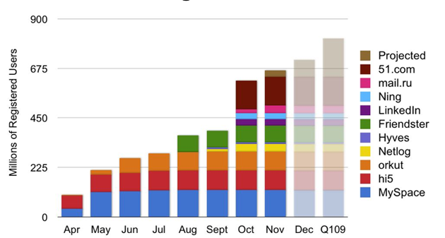 Since launch, the platform has been deployed by over 7,500 developers and reaches a staggering number of users, with 315 million application installs across social networks including MySpace, Orkut, Bebo, and Hi5 and a total reach of 600 million users. MySpace alone has over 135 million application installs, 40 million users and 4600 applications available in its directory.