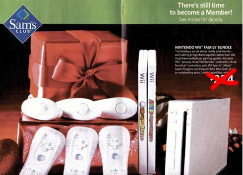 So Photoshop was our nemesis this holiday season: the bundle in the “leaked” Sam’s Club ad is not $224 for a Wii and a bunch of games it’s $425. Not great but not bad, either. Considering the Wii itself will cost $249, less than $200 more for two games, three Wiimotes, and three Nunchucks isn’t bad.