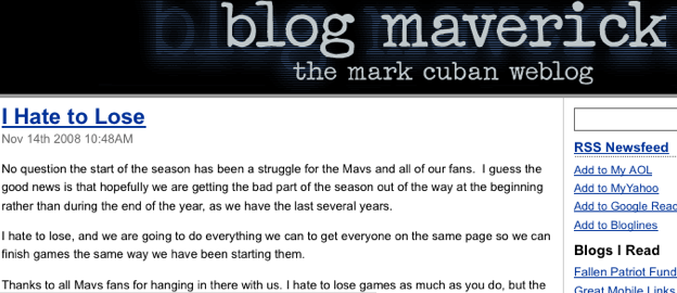 Cuban’s profit on the trade was only $750,000. He’s likely going to spend a lot more than that on legal fees. Why did he do it? His normally voluble blog is silent on the SEC charges, but back in 2004 he did write a post on why he bought the shares. And then in 2005, in a post about another topic, he had this to say about why he sold Mamma.com as an aside: