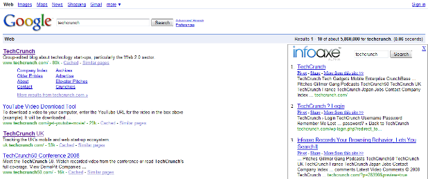 Quite frankly, I don’t think anyone is really waiting for something like infoaxe. Personally, I find much more value in searching my delicious bookmarks because they contain all the web pages I felt were actually worth bookmarking instead of every random website I’ve ever visited. That said, infoaxe does have one cool feature dubbed ‘Pivot‘ that lets you search your web history based on a certain timeframe. E.g. when I’ve been researching a company and its competitors for a TechCrunch review in the past, Pivot would enable me to get an overview of all the pages I visited during the time I conducted the research.