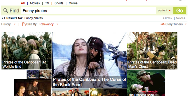 In practice the search seems to work well. Each match is visually displayed in a grid as a thumbnail, with the most relevant matches emphasized with larger images. This style makes it easier to quickly identify movies you might be interested in, and also makes false matches less jarring.