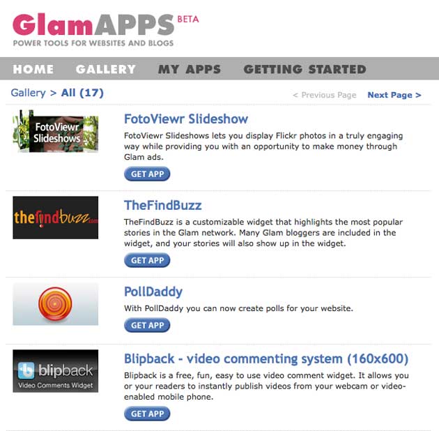 These new applications seem to be blog enhancers on the same order as WordPress plugins, without the social functionality seen on application platforms from the likes of Facebook, MySpace, or LinkedIn. That said, the platform could still be a steady source of revenue for the Glam, as the company will take a portion of the proceeds earned by each app.