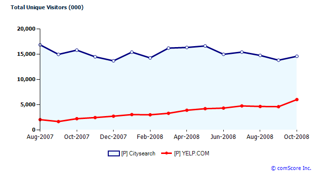 The ad network’s reach crushes it by ten to one. According to comScore, Citysearch brought in 14.6 million unique visitors in the U.S in October, compared to 143 million uniques across its ad network. (Yelp, by the way, did 6 million uniques). By doing abetter job mapping all of its data on local businesses, Citysearch should be able to boost the relevance of its search results and therefore how much it gets paid for them. Maybe Barry Diller should start breaking out results for Citysearch now that IAC is a smaller entity.