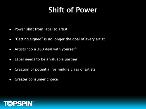 And where the mass-marketed approach was low-margin from the artist perspective, the target-marketed approach can be much higher margin (which is how Joe Purdy buys a house on his iTunes sales). Topspin believes there is an entire middle class of artists for whom the system hasn’t worked in the past who will be empowered by this new model.