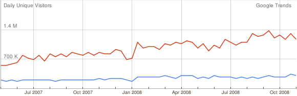 But apparently, this performance wasn’t enough. Xing isn’t pointing out exact reasons, but one factor might be the sluggish traffic on the site. In comparison to LinkedIn, Xing’s traffic on a worldwide basis has stalled in recent months (see the Google Trends chart above).